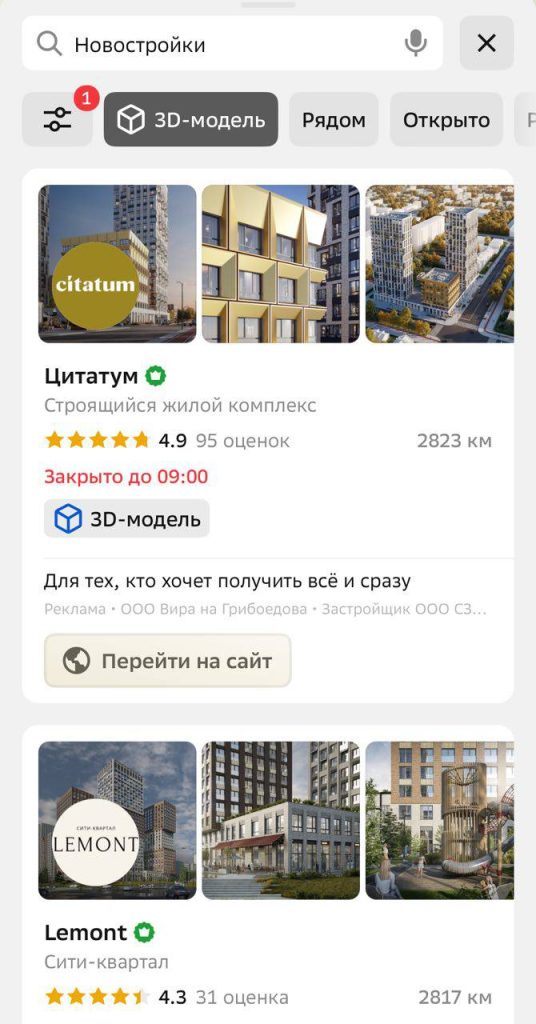 Пользователь может буквально заглянуть в будущее, рассмотреть свой будущий дом и район. Эта эмоция и есть самый сильный драйвер для принятия решения. Иммерсивная 3D-реклама в 2ГИС помогает застройщикам не просто информировать, а вдохновлять своих клиентов.