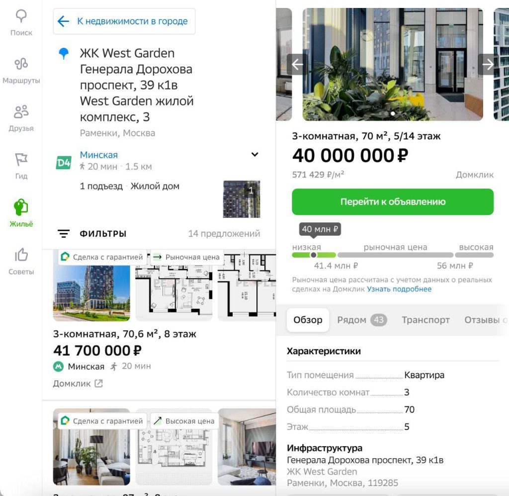 - Лейбл-подсказку прямо в списке или на карте: «низкая цена», «высокая цена» или «рыночная цена».